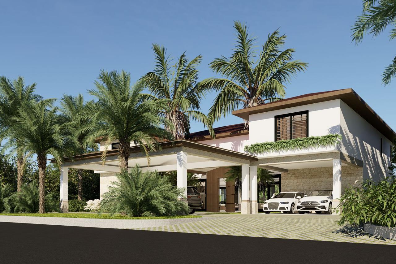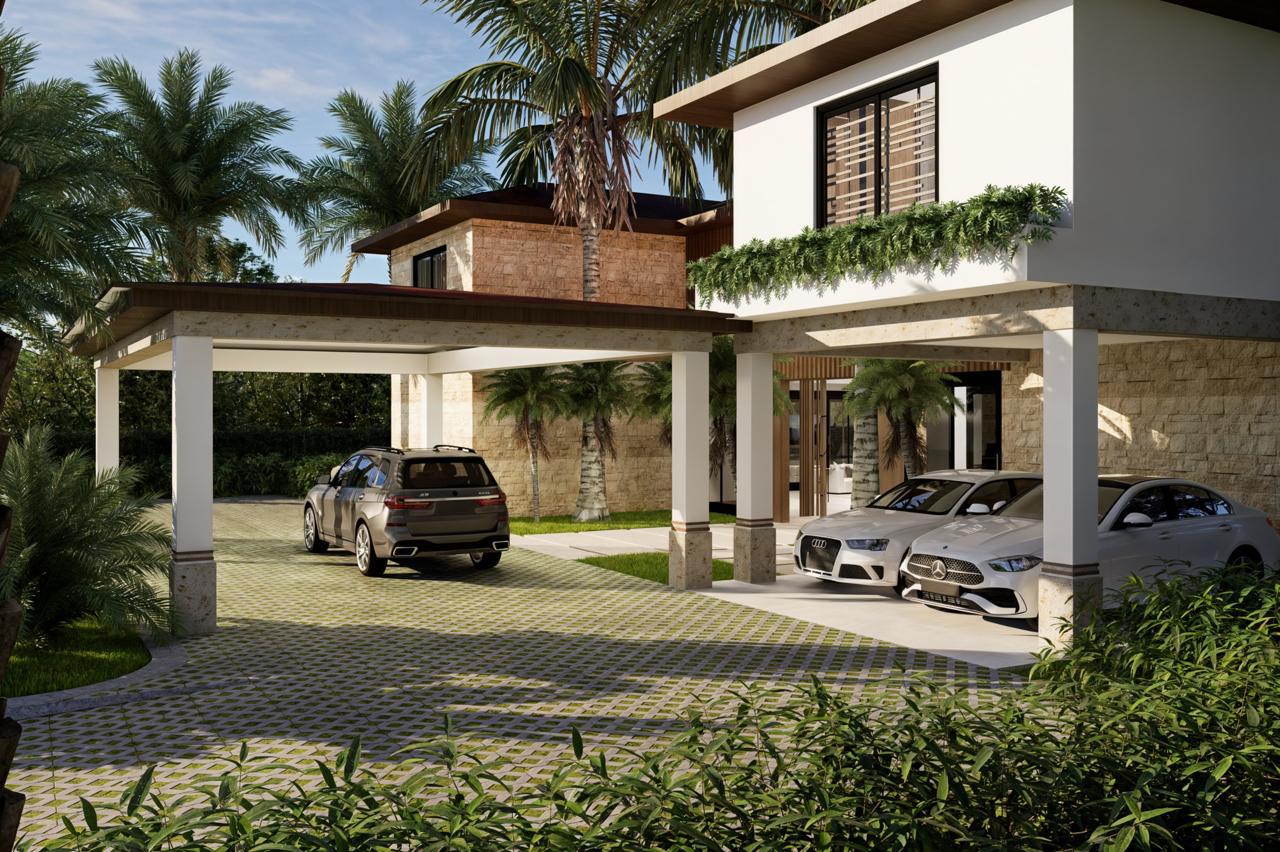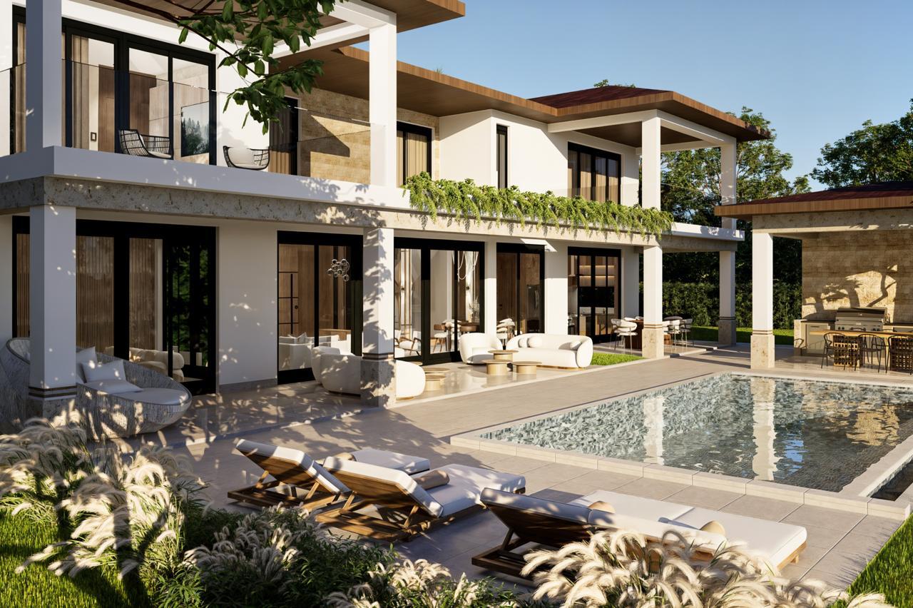 This exclusive luxury villa blends contemporary architecture with premium materials and a lush tropical setting. Its stunning stone façade, surrounded by palm trees and landscaped gardens, opens to spacious, light-filled interiors with elegant furnishings. Floor-to-ceiling windows seamlessly connect indoor and outdoor living. The open-concept gourmet kitchen, private pool, sun-soaked terraces, and social areas are designed for high-end comfort, style, and entertainment. Every detail reflects refined Caribbean elegance.