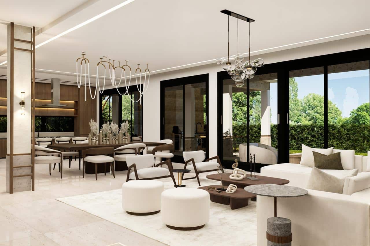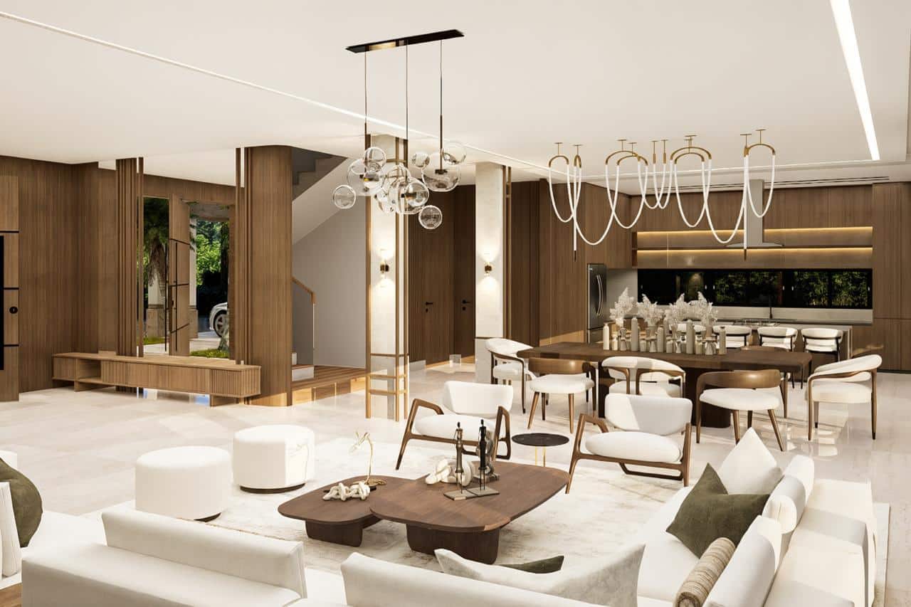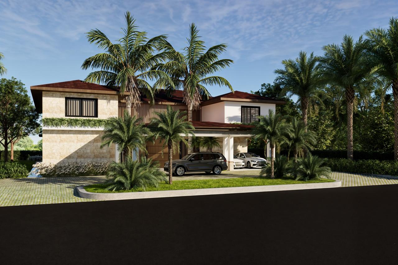 This exclusive luxury villa blends contemporary architecture with premium materials and a lush tropical setting. Its stunning stone façade, surrounded by palm trees and landscaped gardens, opens to spacious, light-filled interiors with elegant furnishings. Floor-to-ceiling windows seamlessly connect indoor and outdoor living. The open-concept gourmet kitchen, private pool, sun-soaked terraces, and social areas are designed for high-end comfort, style, and entertainment. Every detail reflects refined Caribbean elegance.