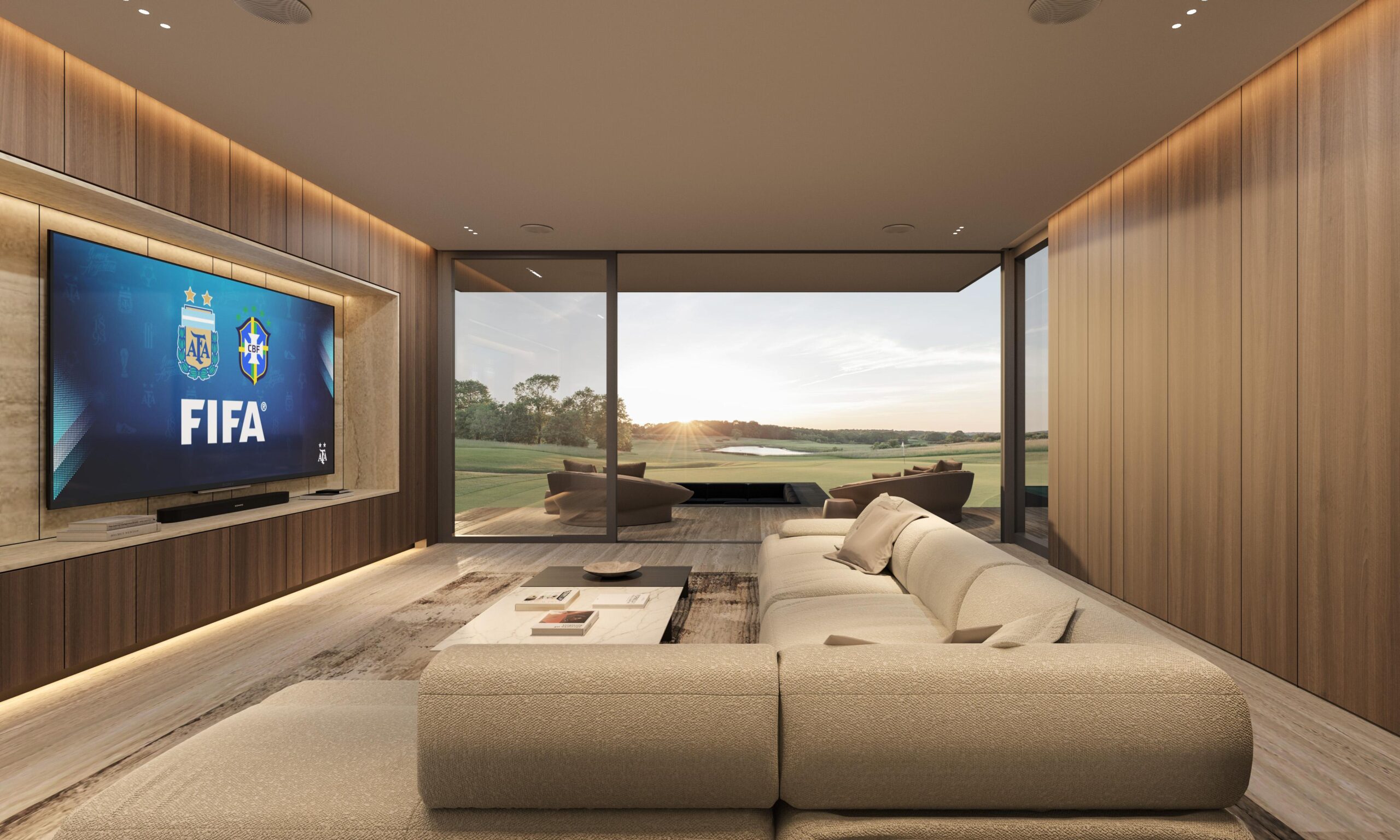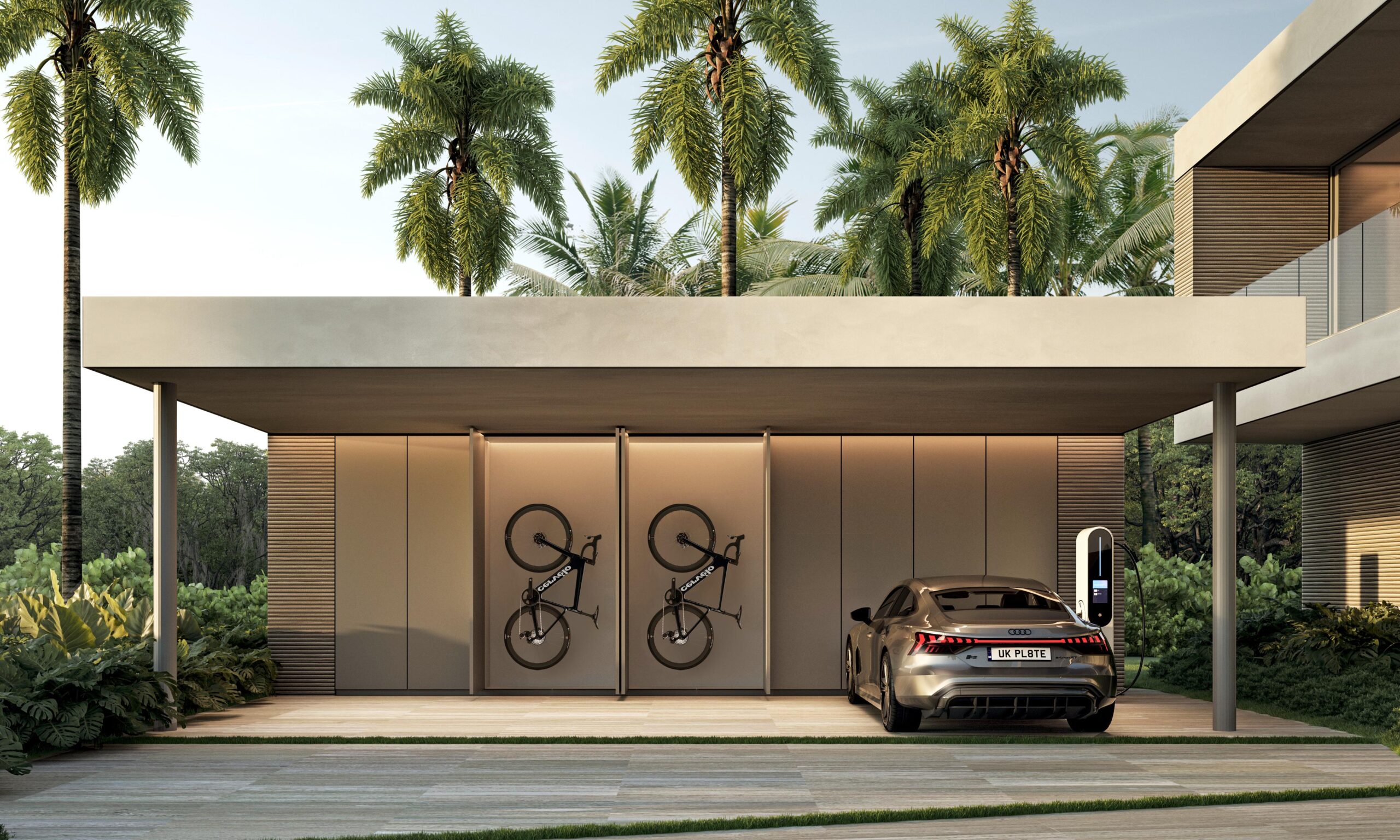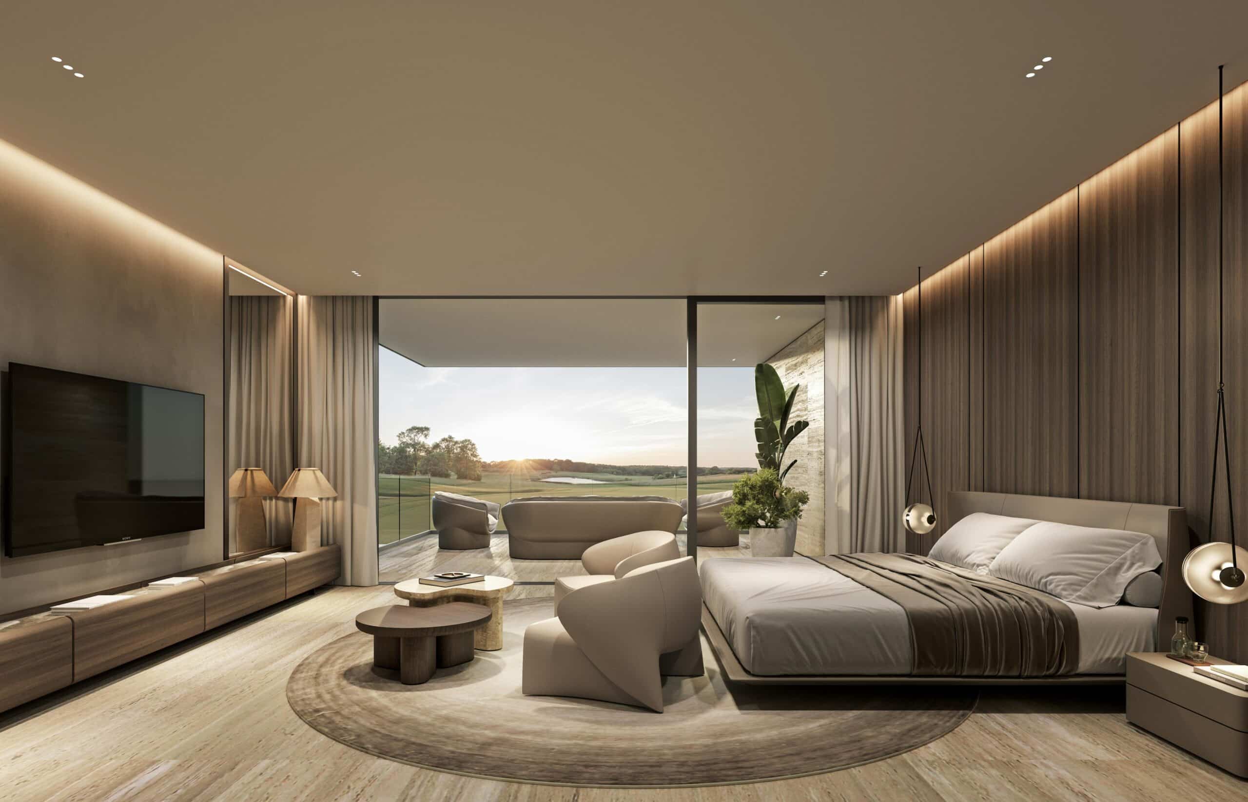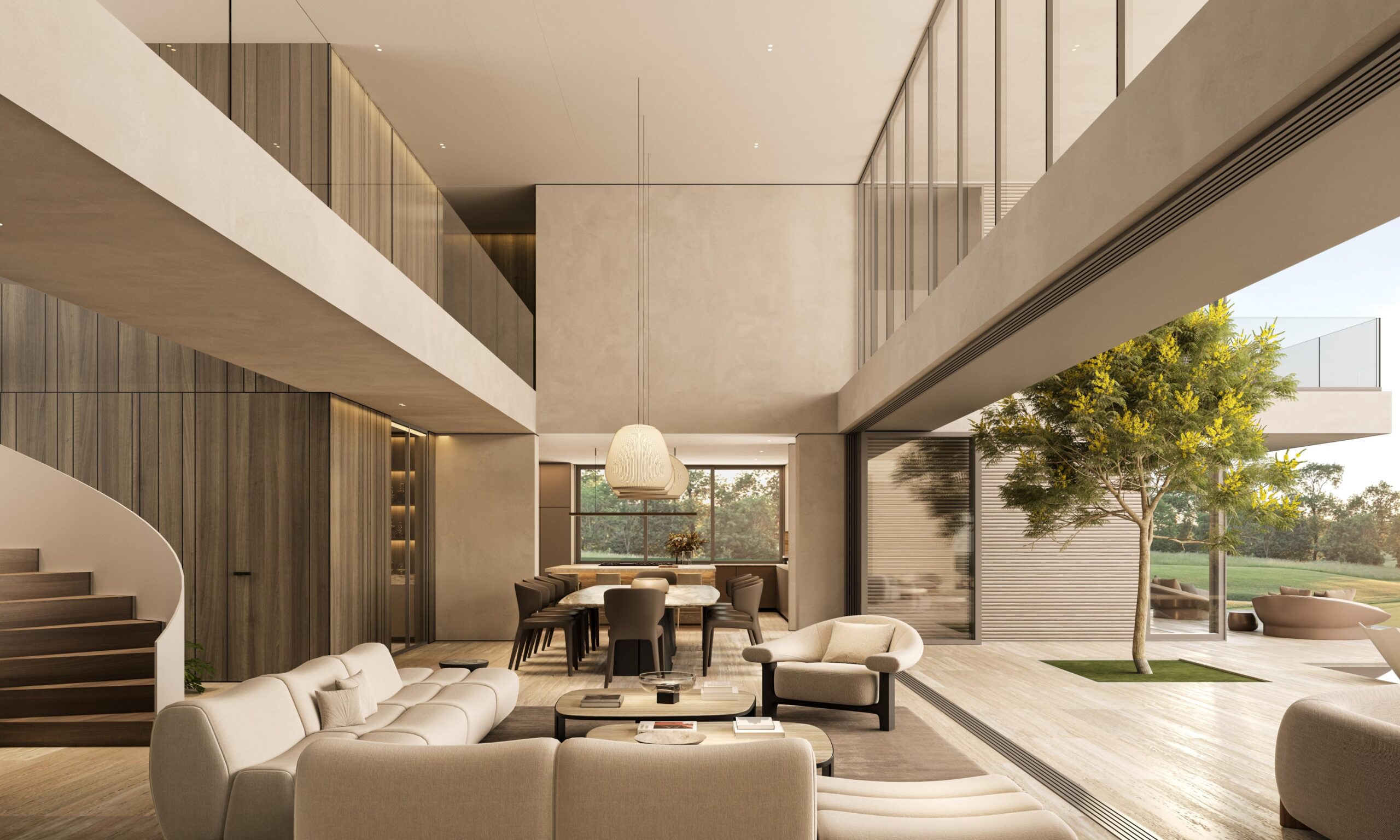 Contemporary architecture with clean lines and balanced proportions, blending modern elements with tropical touches. Natural materials such as stone, wood, and neutral finishes dominate, combined with large windows that maximize natural light and the indoor-outdoor connection. Expansive roofs, overhangs, and pergolas add freshness and elegance, harmoniously integrating with the surrounding landscape.